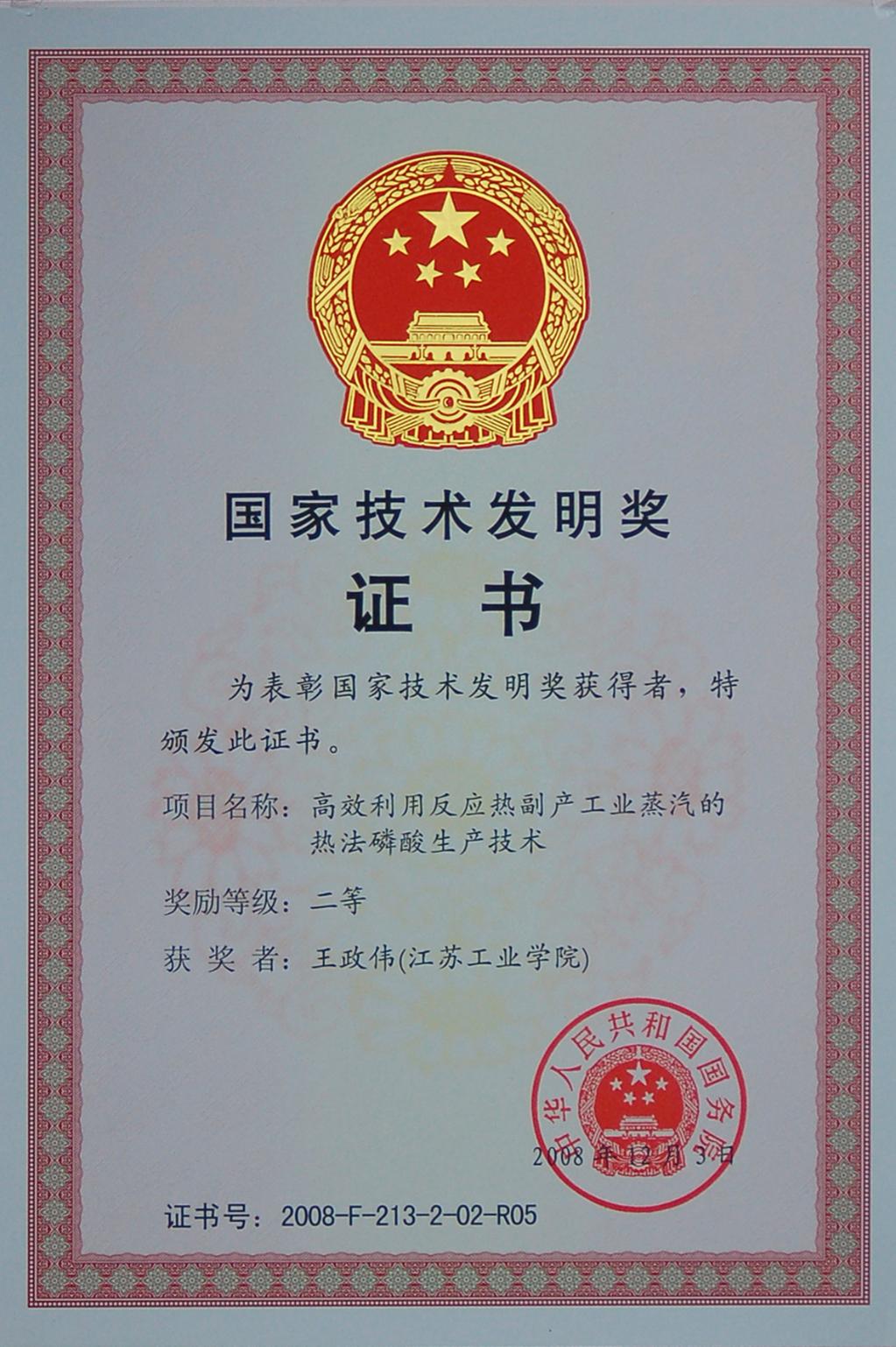 本技术为国内外首创,发明了一整套利用普通自然空气燃烧黄磷来回收反应热并副产工业蒸汽的热法磷酸生产技术;本技术将化工反应塔结构要素与工业锅炉结构要素相结合的具有独特创新设计的关键设备--特种燃磷塔;发明了基于结膜物特性和等离子体喷涂相结合的高温防腐技术,建立了特种燃磷塔的理论模型与工程设计方法,实现了装置的长期稳定安全运行,其热能回收率达到65.2%。目前已在国内17个企业的40套装置上实施了该发明技术,总生产能力已达150万吨/年,占行业生产能力的40%;获得技术转让收入2000多万元,各项指标达到国际领先水平,实现了大规模推广应用。该技术在2008年获得国家技术发明二等奖。