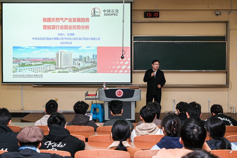 杜培恩结合国际能源发展动向与国内能源政策,系统阐述了天然气在“双碳”目标下的战略地位。他指出,我国天然气基础设施规划正加速推进,未来将形成“全国一张网”的供气格局,为清洁能源转型提供坚实保障。针对能源结构优化,他强调,天然气作为过渡能源的重要性不言而喻,需通过技术创新与政策协同,推动产业链向高端化、智能化升级。 关于就业形势,杜培恩结合中石化等企业的用人需求,提出“技术+实践+创新”的复合型人才培养方向。他鼓励学生深耕油气领域,关注数字化、智能化技术在能源工程中的应用,并通过校企合作项目积累实战经验。现场互动环节中,学生围绕行业前沿技术、职业发展路径等问题踊跃提问,杜培恩以扎实的专业素养和丰富的行业经验逐一解答,现场气氛热烈。
