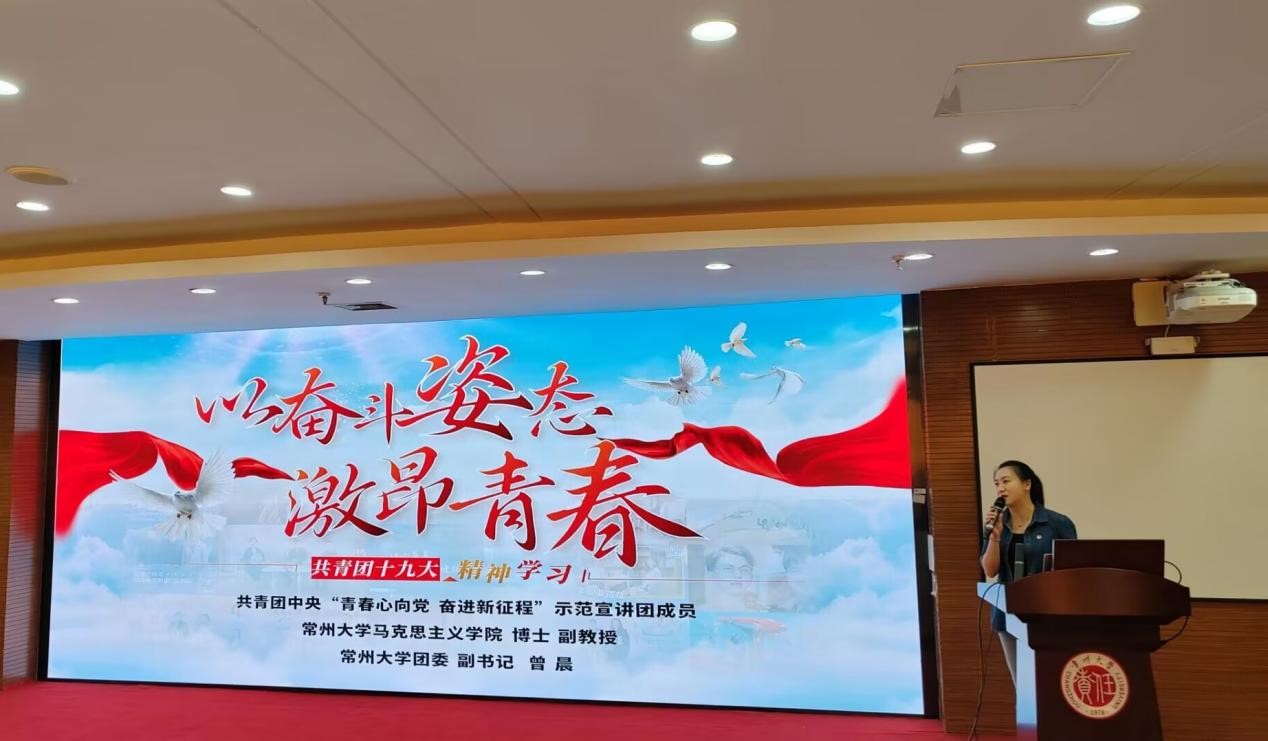 随后,曾晨以“以奋斗姿态激昂青春”为题为全体学生骨干讲述了一堂生动的信仰公开课。她带领学生重温近年来习近平总书记对青年同志的寄语,从以习近平同志为核心的党中央关心青年成长成才、习近平总书记关于青年工作的重要思想和实践要求、新时代青年成长要求等方面进行集中宣讲,深入解读了习近平总书记对当代青年的要求以及厚望。她强调,当代青年要践行“请党放心,强国有我”的青春誓言,更要坚定理想信念、提升道德素养、增强能力本领、矢志不渝奋斗,以奋斗姿态激昂青春,在强国建设接力赛中贡献磅礴的青春力量,为实现中华民族伟大复兴的中国梦而不懈奋斗!(魏锦扬/编辑王永/审核)